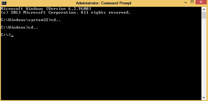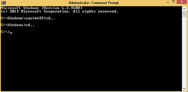 ويكفي من اجل تشغيل الاداة على الويندوز ، ان تنقل الاداة بعد تحميلها إلى القرص :C . بعد ذلك تتوجه إلى موجه الاوامر DOS وتأكد من تشغيله بصلاحيات المدير . بعد ذلك تكتب في موجه الاوامر الامر : ..CD واضغط على الزر ENTER تم التب مرة اخرى ..CD واضغط مجددا على الزر ENTER إلى ان تتاكد انك اصبحت في المسار c كما في الصورة :
